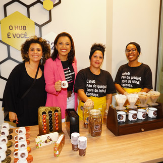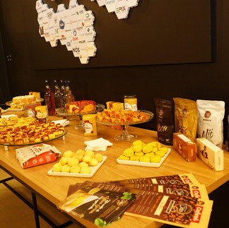 A noite começou com um delicioso coffee break oferecido pela "Cheirin Bom", franquia de cafés especiais e delícias mineiras localizada na Mata da Praia, em Vitória (@cheirinbao.matadapraia). Os proprietários da cafeteria, Eduardo e Gabriela, estavam no evento e proporcionaram uma experiência gastronômica única aos participantes, oferecendo os melhores itens de seu cardápio, que incluía cafés especiais, pão de queijo com linguiça, bolos e o famoso sanduíche de pão de queijo.